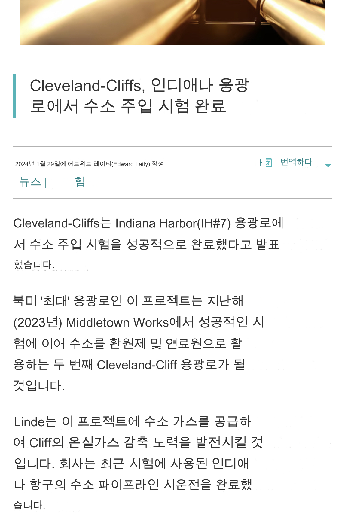 어제 용광로에 수소를 주입하고 이를 환원제로까지 사용한다는 소식 전해 드렸습니다.