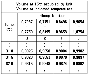 2. 검량하고자 하는 탱크의 사운딩 테이블(sounding table)을 이용하여 유류의 용적을 구한다.