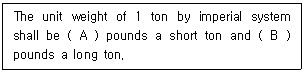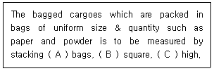 1. 베일(bale) 용적을 Vb, 그레인(grain) 용적을 Vg, 화물이 차지하는 선창 용적을 Vc라고 하면 화물틈률(broken space ratio, %)은 이다.