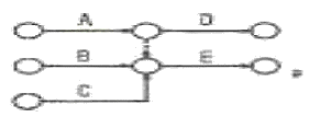 5. 다음 그림의 AOA(Activiry-on-Arc) 네트워크에서 E작업을 시작하려면 어떤 작업들이 완료되어야 한는가?