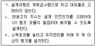 13. 자외선반응조 설계 시 고려할 사항으로 옳은 것을 모두 고른 것은?