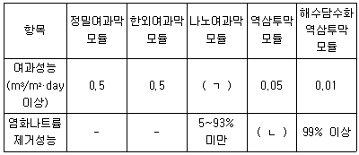 18. 수도용 막모듈의 성능 기준에 관한 사항이다. ( )에 들어갈 내용으로 옳은 것은?