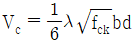 17. 계수전단력 Vu=100kN이 작용하는 직사각형 철근콘크리트보 단면에서 최소 전단철근의 배치가 필요 없는 단면의 유효깊이 d의 최솟값[mm]은? (단, 콘크리트 공칭전단강도 이고, 콘크리트의 설계기준압축강도 fck는 25MPa, 단면의 폭 b는 500mm, 경량콘크리트 계수 λ는 1.0이다)