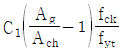 18. 콘크리트구조 휨 및 압축 설계기준에서 제시하는 압축부재의 설계에서 최소 나선철근비 ρs 일 때, C1은? (단, Ag는 기둥의 전체 단면적, Ach는 나선철근의 바깥선을 지름으로 하여 측정된 나선철근 기둥의 심부 단면적, fck는 콘크리트의 설계기준압축강도, fyt는 나선철근의 설계기준항복강도이고 700MPa 이하이다)