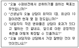 1. 수퍼비전의 목표를 함께 설정한 후 수퍼바이저와 수퍼바이지가 목표를 달성하기 위한 과업에 착수해야 한다.
