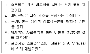 73. 근거이론에 관한 설명으로 옳지 않은 것을 모두 고른 것은?