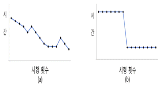 1. (a)는 여러 번의 시도로 인해 수행시간이 짧아지는 통찰의 학습곡선이다.