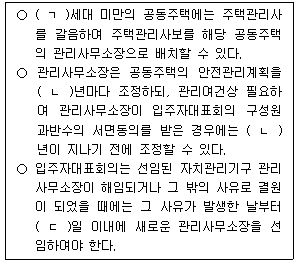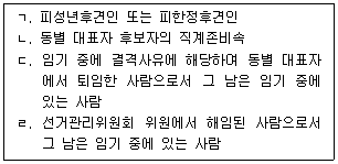 1. 동별 대표자 선거구는 2개 동 이상으로 묶거나 통로나 층별로 구획하여 정할 수 있다.