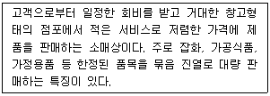 10. 아래 글상자에서 설명하는 소매상의 종류로 가장 옳은 것은?