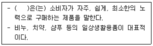 9. 아래 글상자의 제품들 중 도매상의 개입 필요성이 상대적으로 낮은 제품만을 바르게 나열한 것은?