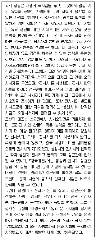 5. 조선시대에 성균관 원점 300점을 따지 못한 사람은 생원시에 응시하여 합격한 후 문과 시험에 응시해야 했다.