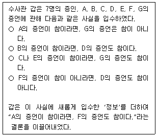 5. F의 증언이 참이라면, E의 증언은 참이 아니다.