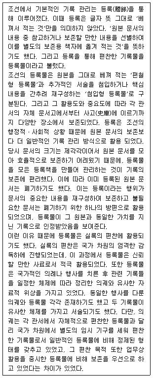 2. 실록의 사료로 활용되었던 등록물은 원본 문서를 베껴서 적는 편철형 등록물이었다.