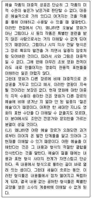 19. 위 글의 (가)와 (나)에 들어갈 말을 적절하게 나열한 것은?