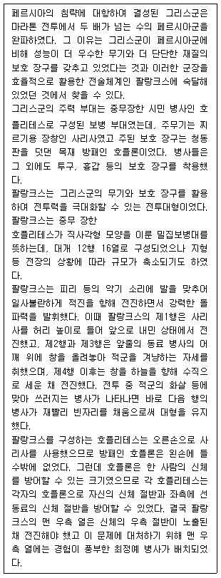 1. 그리스군은 마라톤 전투가 벌어질 무렵에는 팔랑크스 전투대형에 익숙해 있었다.