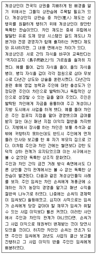 4. 개성상인은 영업 능력이 인정될 경우, 다른 사람이 훈련시킨 점원을 자신의 차인으로 발탁하였다.