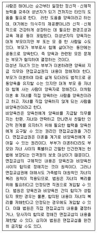1. 비양육친은 양육비를 지급해야 면접교섭권을 행사할 수 있다.