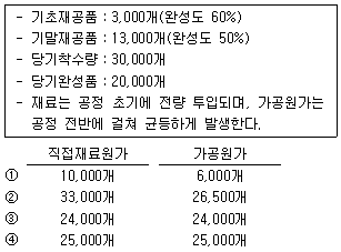 10. 다음은 평균법에 의한 직접재료원가 및 가공원가의 완성품환산량을 각각 계산하면 얼마인가?