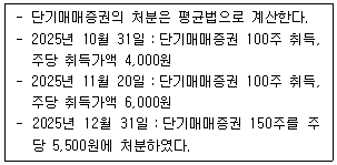 8. 다음의 자료를 이용하여 2025년 12월 31일에 인식할 처분 손익을 계산하면 얼마인가?