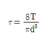 13. 축에 발생하는 전단응력은 τ, 축에 가해진 비틀림 모멘트는 T라 할 때 축 지름 d를 나타내는 식은?