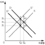 ④ 시장에서 X재가 Q0만큼 거래되고 개당 세금이 T원이므로 정부의 조세 수입은 T×Q0이다.