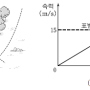그림 (나)와 같이 (가)에서 B의 처음 속력만 3밸로 바꾸어 던졌을 때, 두 공이 충돌할 때까지 낙하한 거리는? (단, 공의 크기와 공기 저항은 무시한다.) [3점]