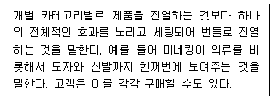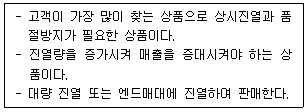 1. 회전이 빠른 한정된 계열의 제품만을 판매