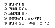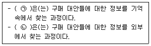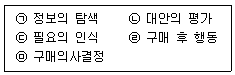 44. 아래 글상자에 제시된 내용들을 소비자의 일반적인 구매 의사결정과정에 맞추어 나열한 항목으로 옳은 것은?